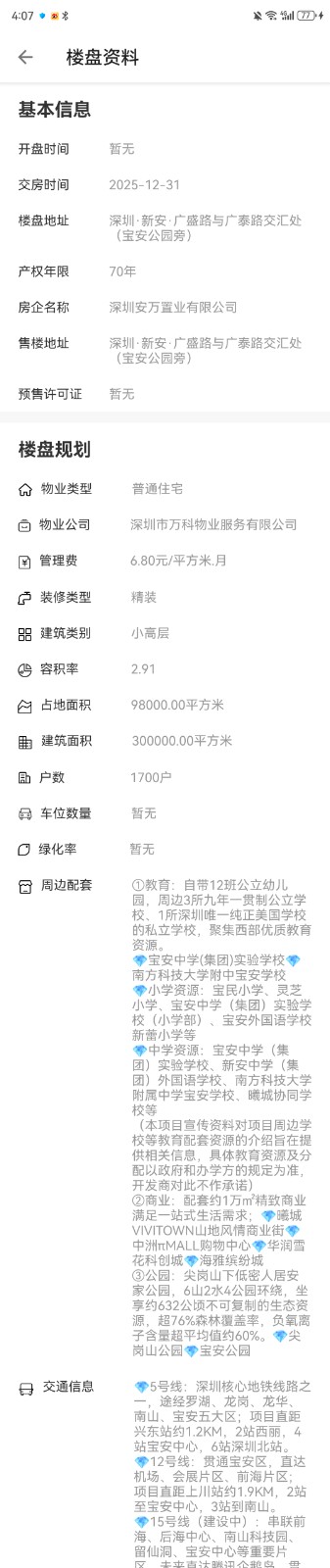 区域:深圳·新安·广盛路与广泰路交汇处(宝安公园旁)