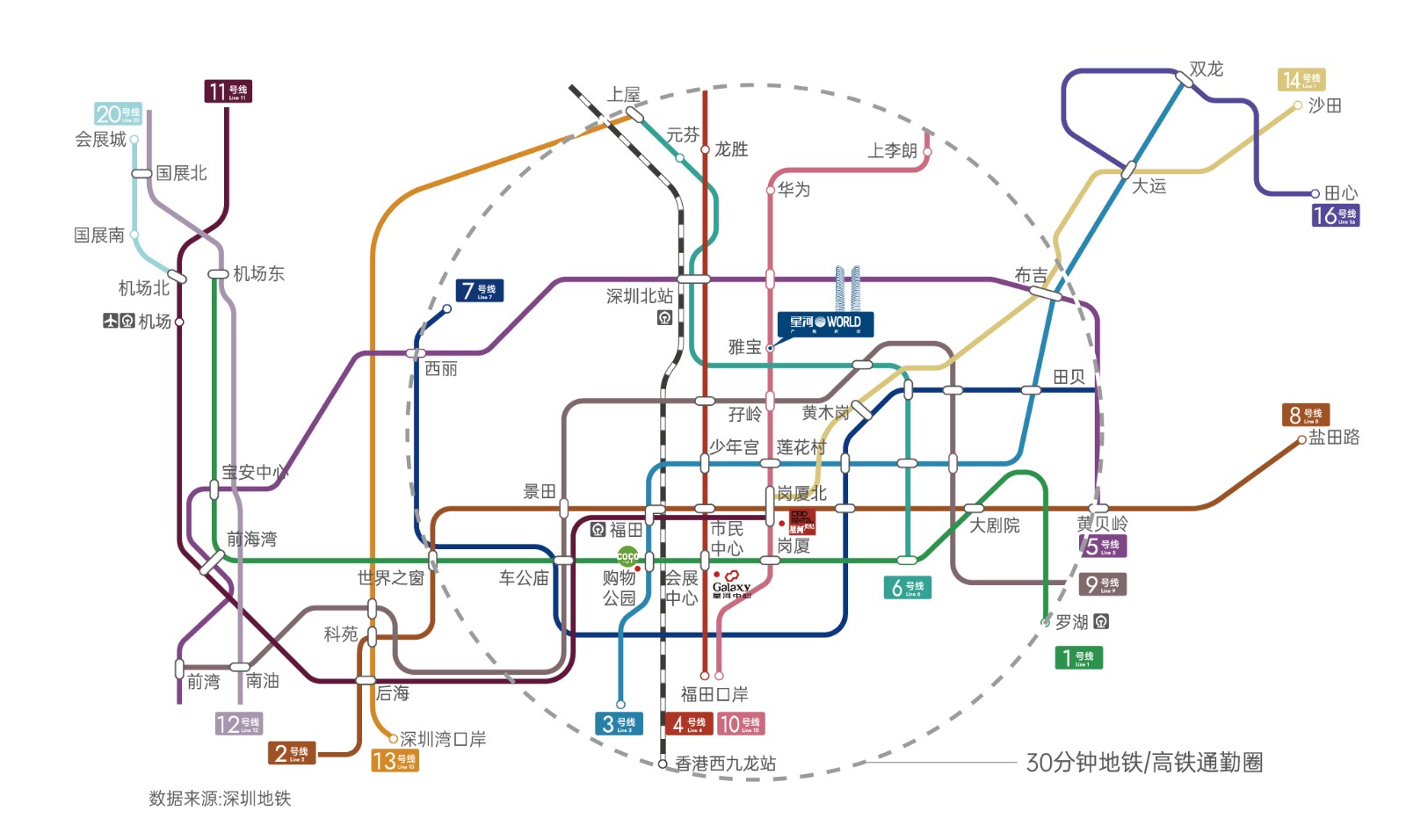 湾区科创中枢链接香港、福田、龙岗、龙华,享都市核心区资源和龙岗世界级电子信息产业资源,聚集华为、富士康等产业龙头
